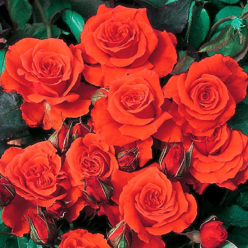 Floribunda très florifère, assez rustique. La floraison est de couleur orange lumineux.