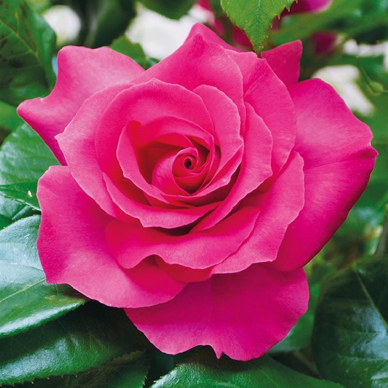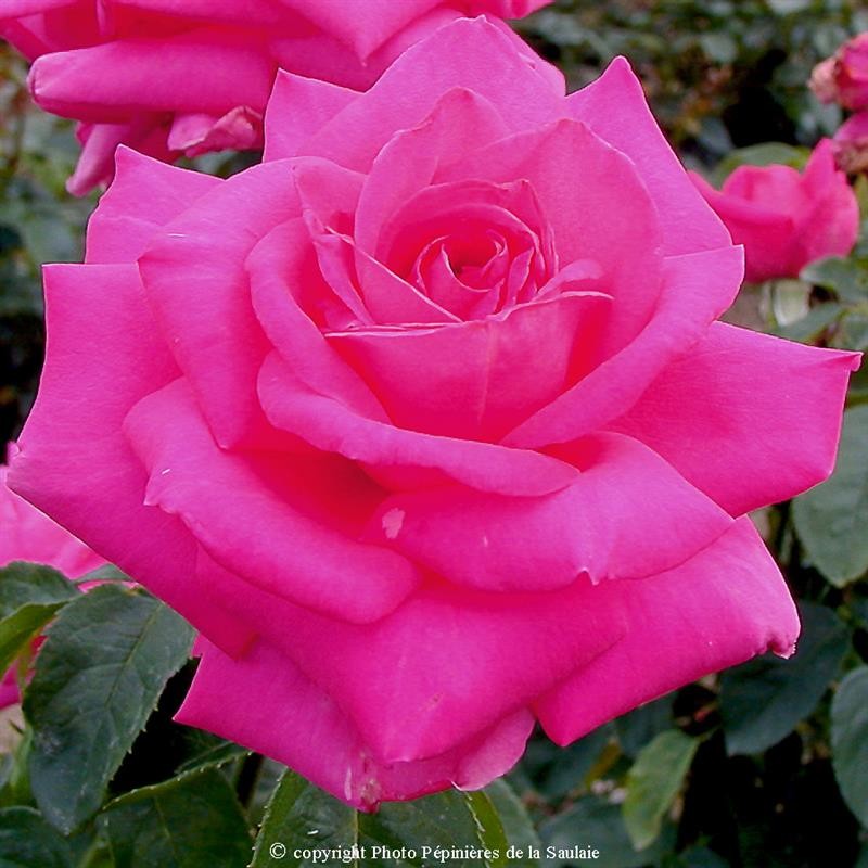 | Description | Rosier à port érigé et au feuillage foncé. Nombreuses fleurs moyennes de couleur rose fuchsia aux reflets rouges, parfum léger. Très vigoureux et excellent en rosier tige. |