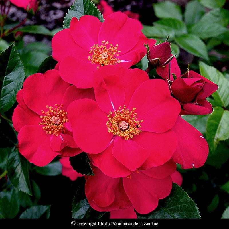 Variété de rosier spécialement créée et sélectionnée par nos soins pour l’abondance de sa floraison ! Sa couleur rouge magenta très `Flashy` s’associe aisément avec une large gamme de végétaux. La brillance de son feuillage, la force de sa floraison et la facilité de son entretien ont déjà séduit les juges expérimentés de 8 concours internationaux en Europe. Médaille d’or 2009 La Haye(Pays Bas) Monza(Italie) Courtrai(Belgique) Orléans(France) Médaille d’argent 2010 Baden Baden(Allemagne) Glasgow(Ecosse) - 2015 La Haye(Pays Bas) Certificat du mérite 2010 Saverne(France) Certificat de bronze 2014 La Haye(Pays Bas)