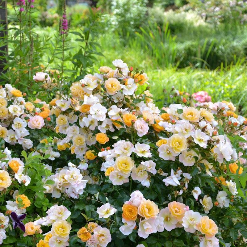 Ce rosier couvre-sol compact est très résistant aux maladies. Ses fleurs semi-doubles de couleur orange saumoné se détachent bien du feuillage vernissé.